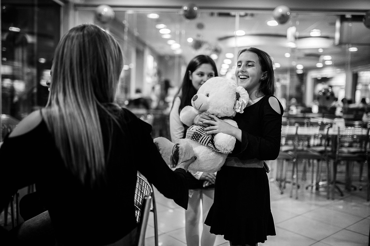 Quando cheguei para fotografar o aniversário de Ana Clara, notei que ela estava muito feliz pelo presente que seus pais haviam lhe dado, "a festa".
