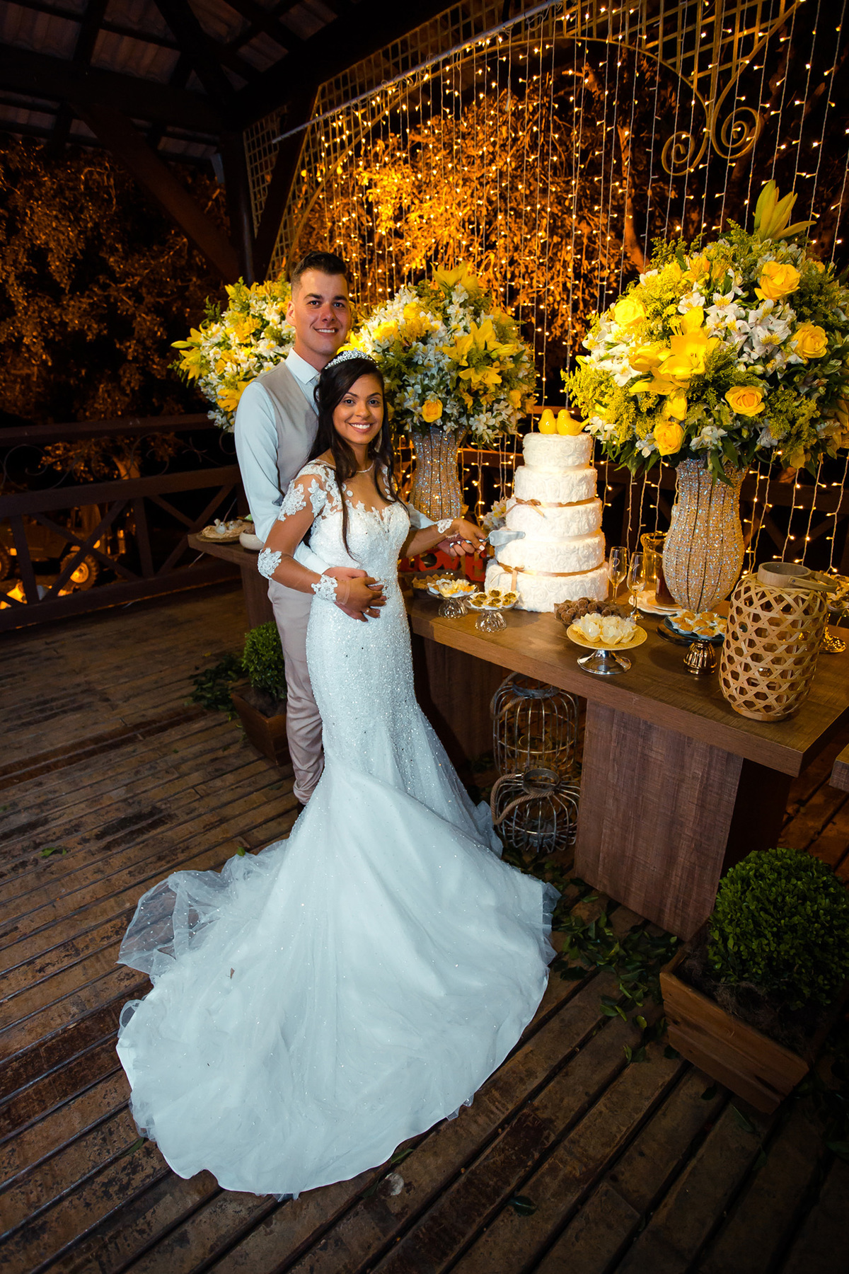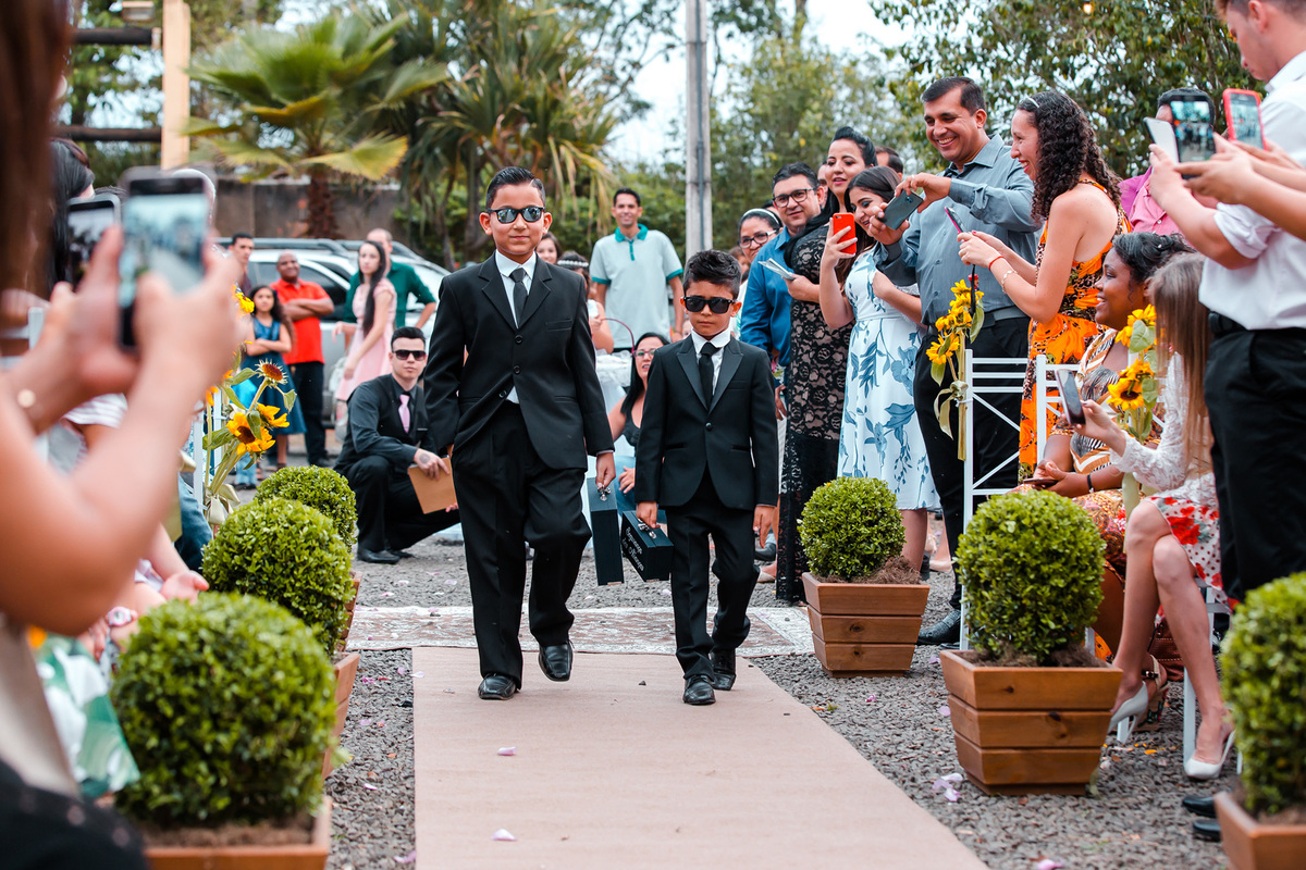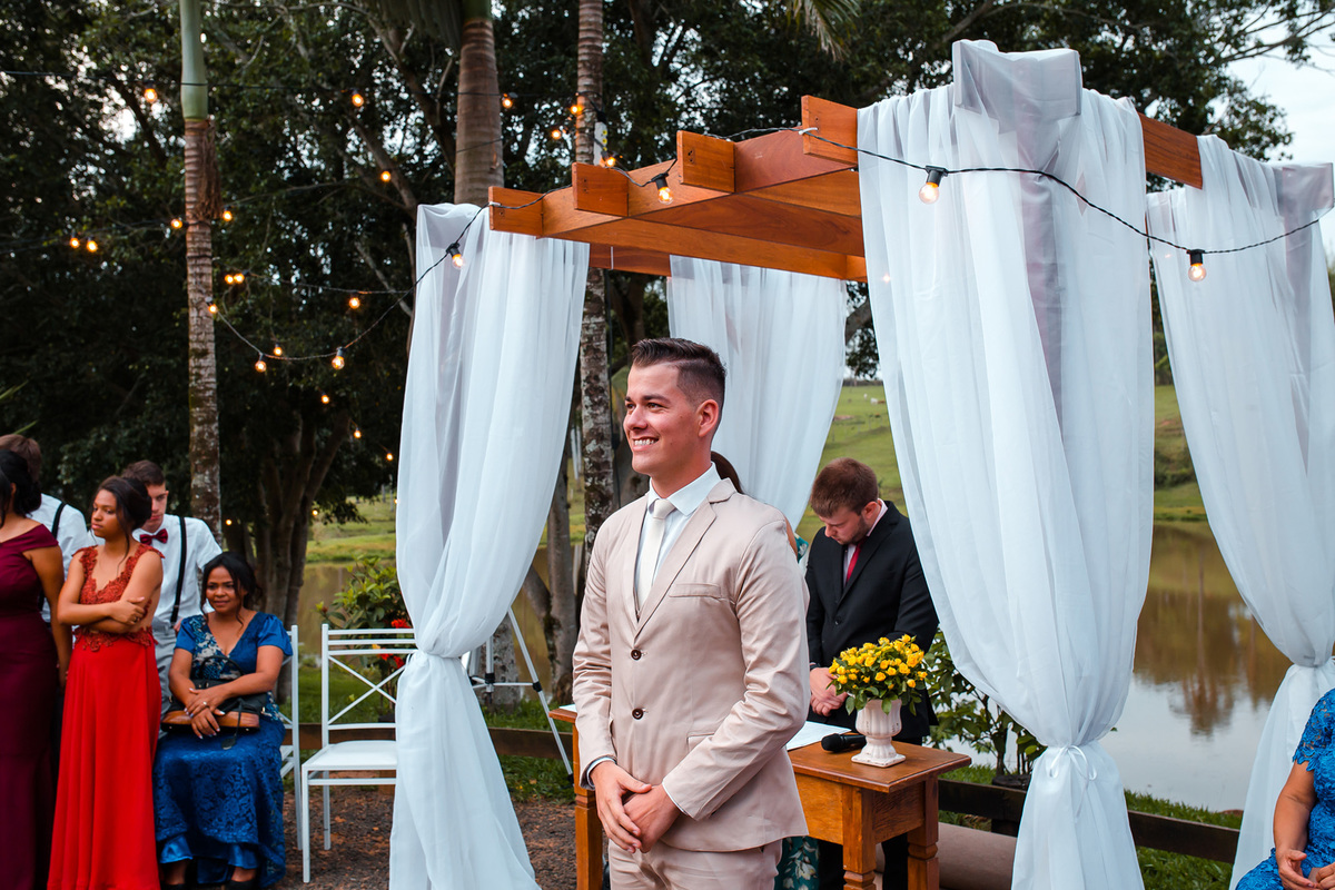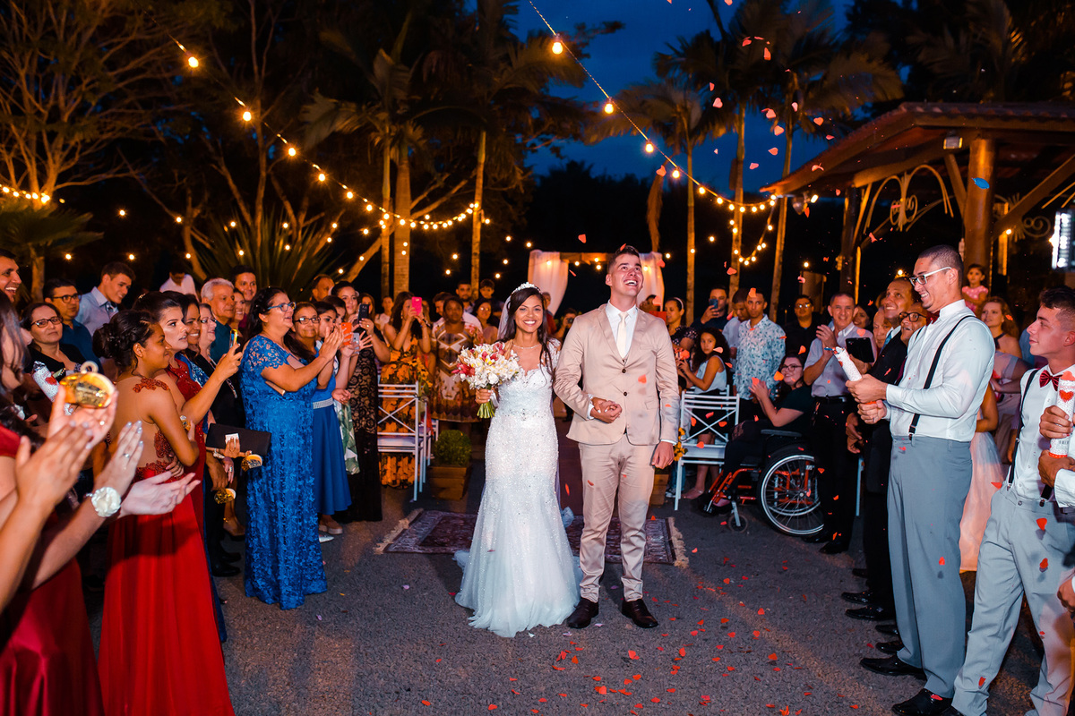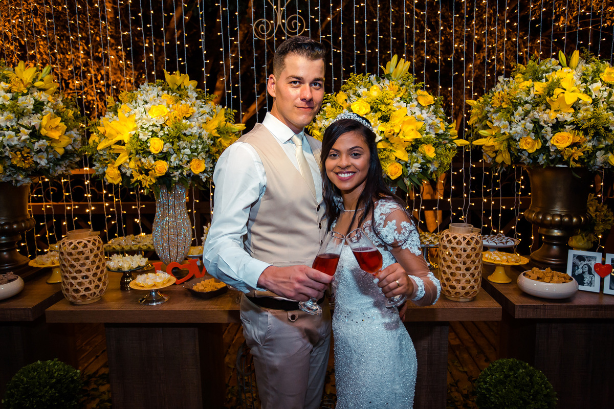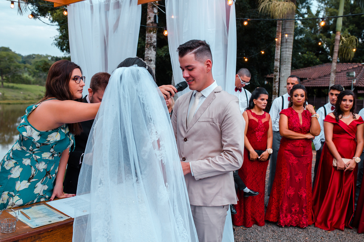 Estavam presentes familiares e amigos onde puderam presenciar a união do casal e alegria de estarem se casando.