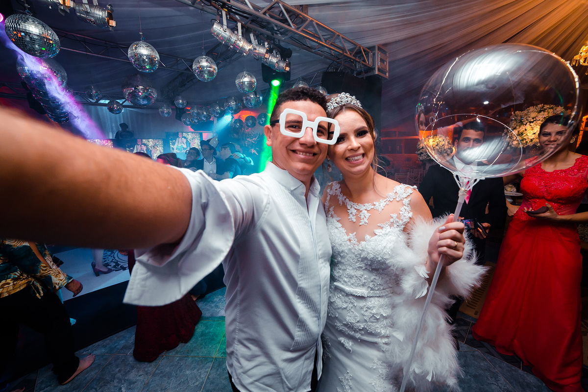 Foram recepcionados por parentes e amigos, a festa esta linda, conforme o casal planejou.