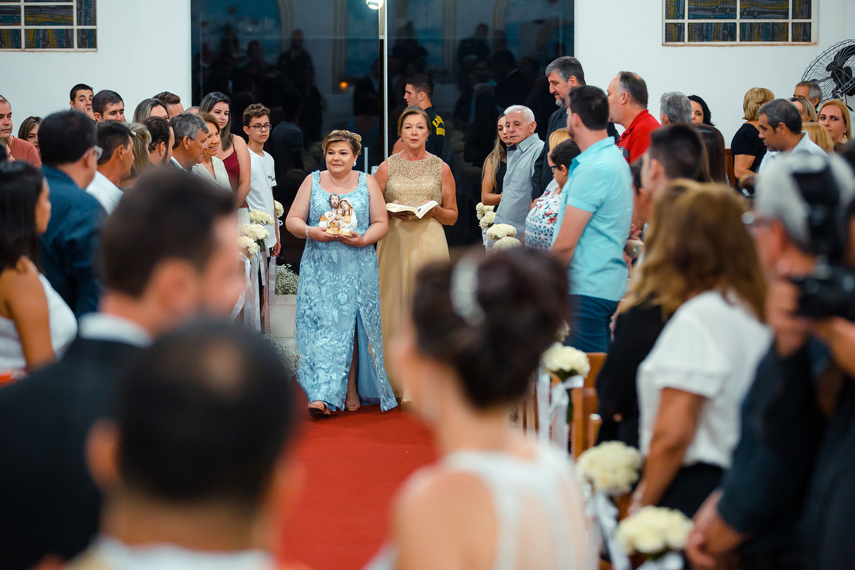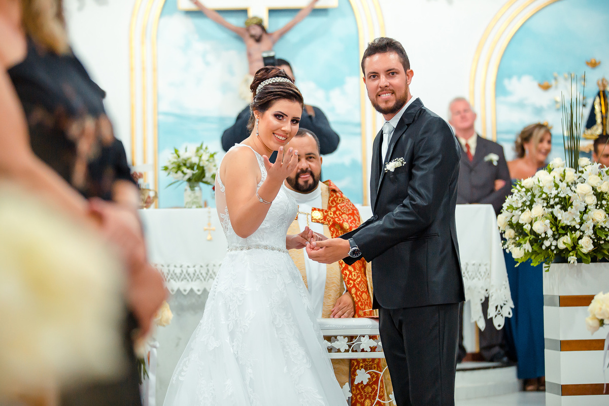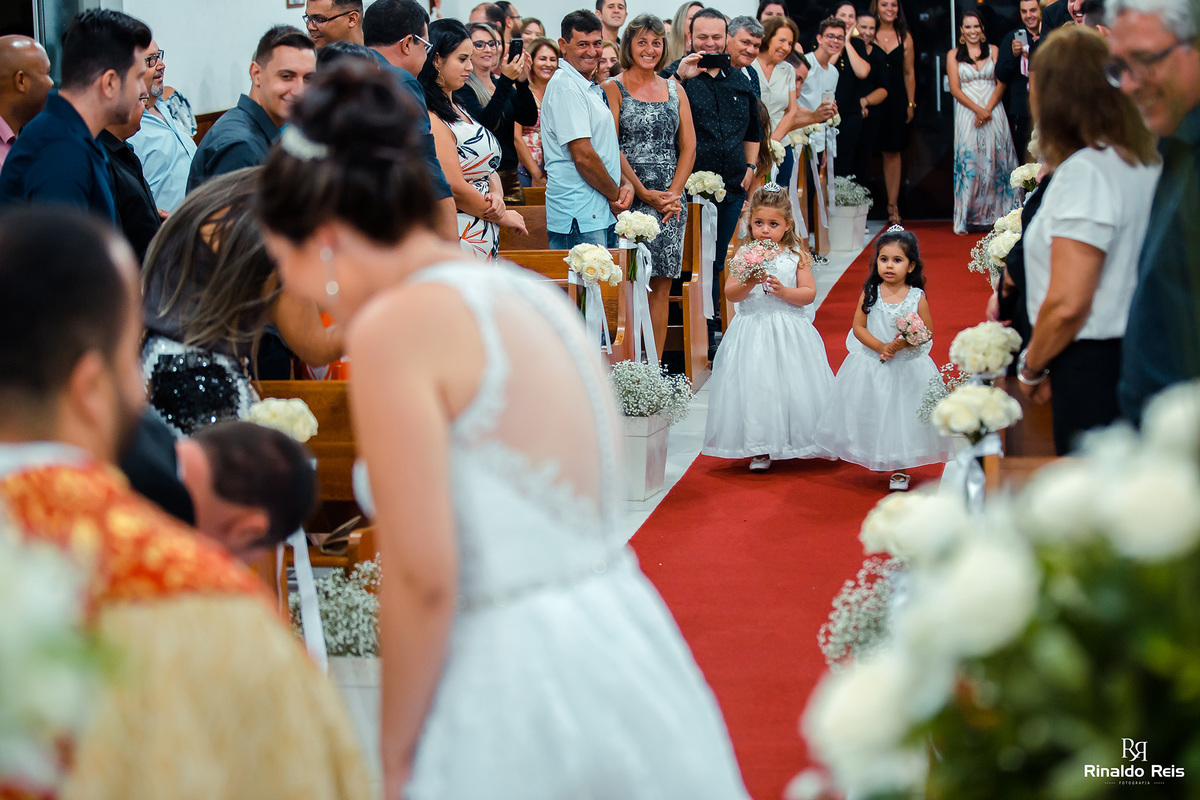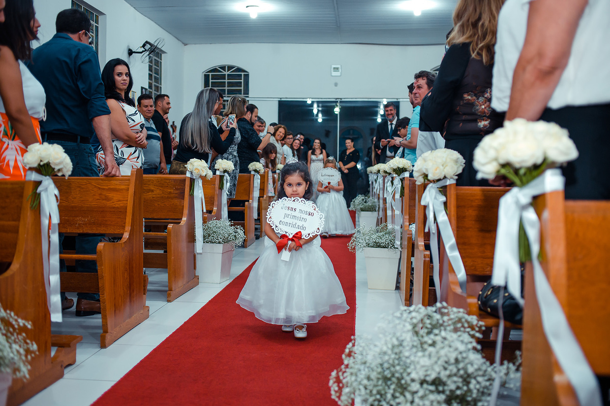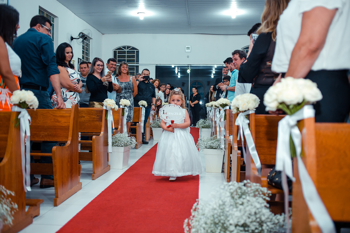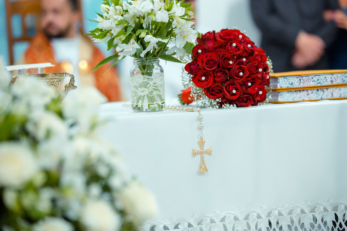 Nem a chuva atrapalhou tanta beleza e emoção deste casamento, a igreja estava linda e com o casal ficou mais linda ainda.