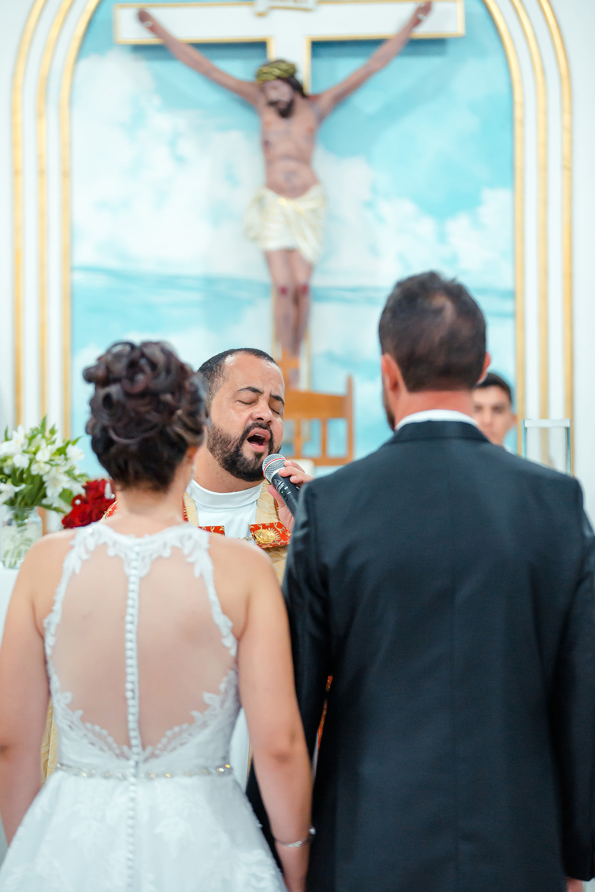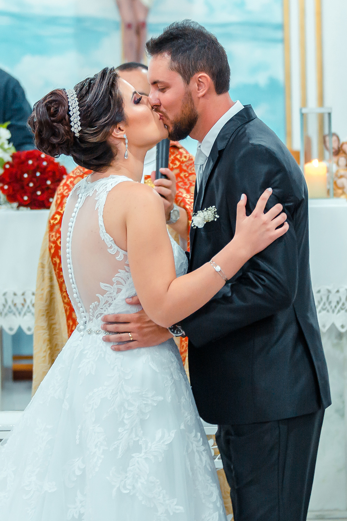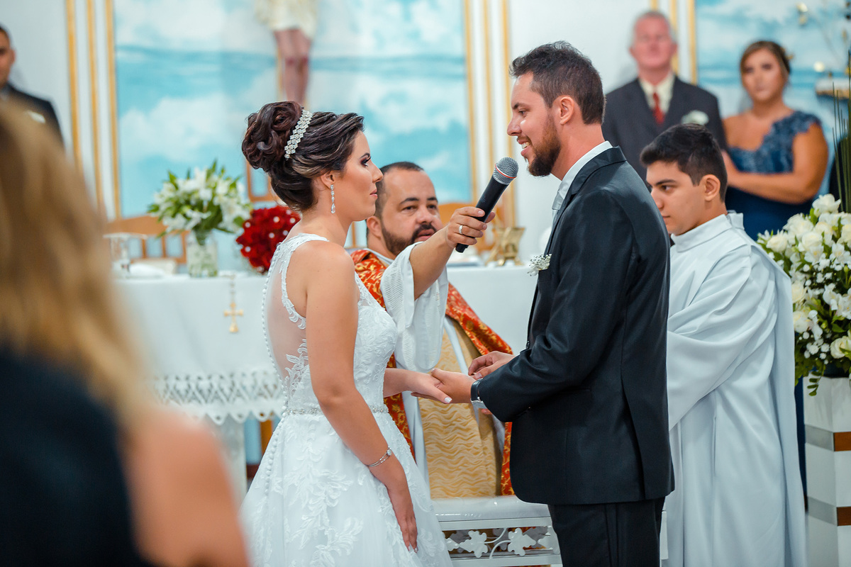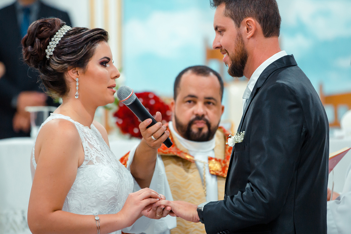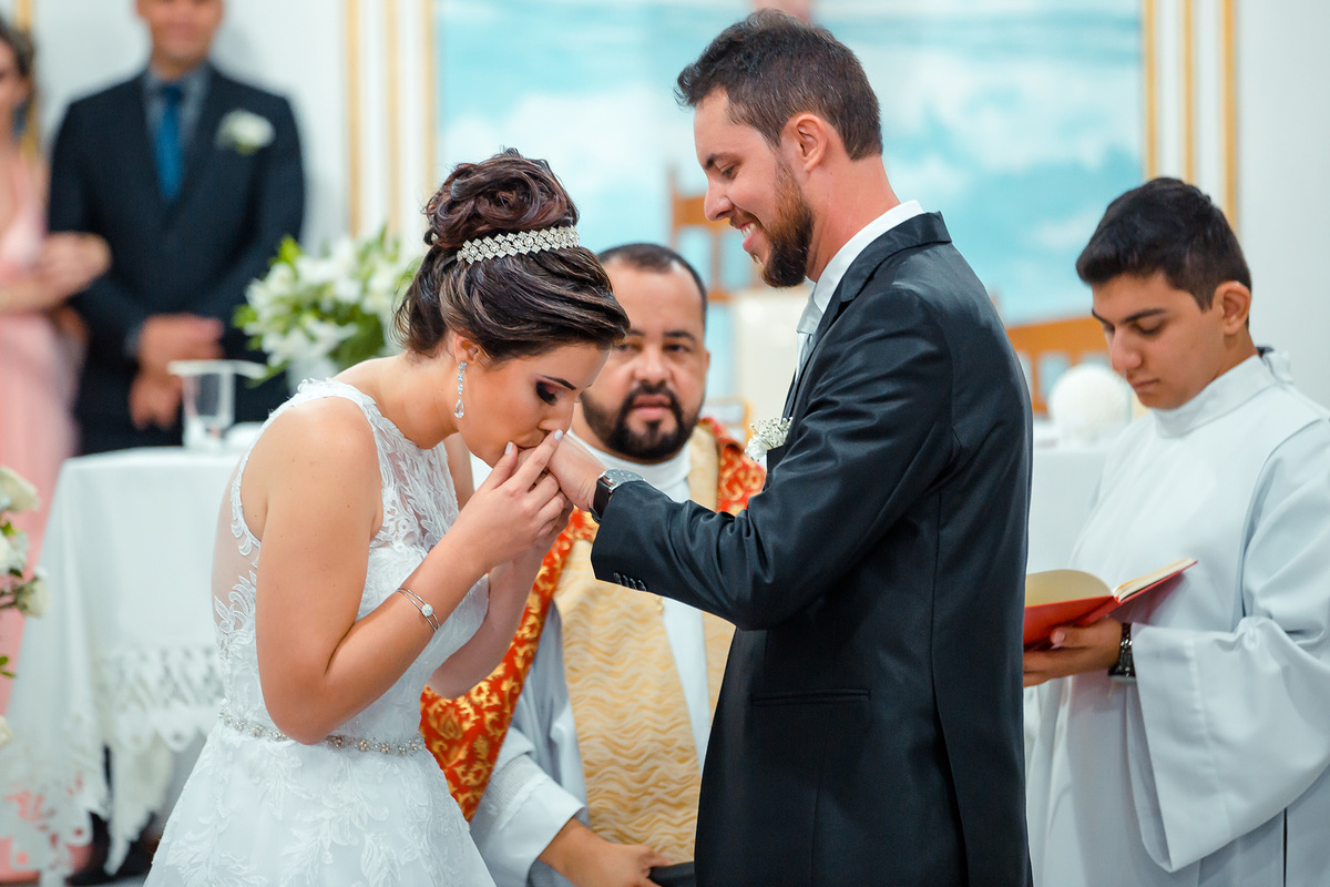 Nem a chuva atrapalhou tanta beleza e emoção deste casamento, a igreja estava linda e com o casal ficou mais linda ainda.