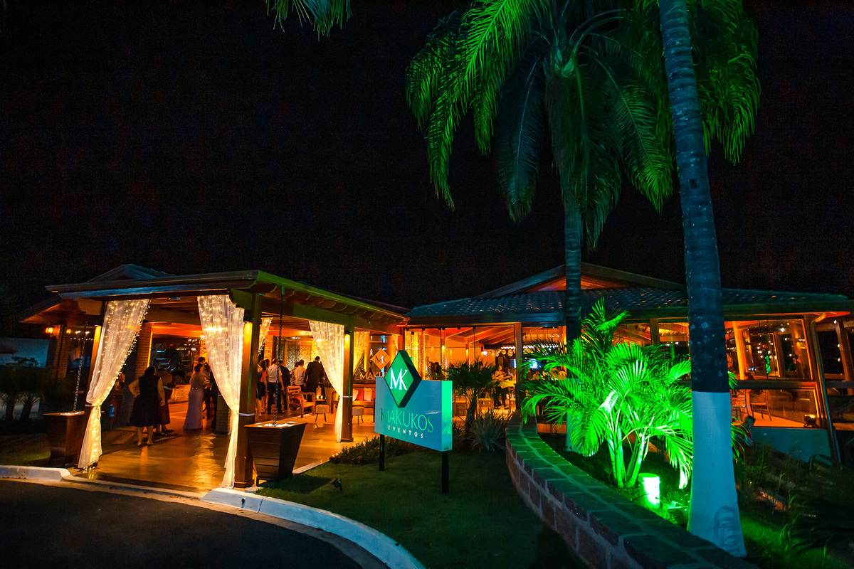 Quando chegamos no Makukos, presenciamos uma linda decoração realizada, totalmente diferente e do jeito que o casal planejou, sem contar a iluminação que estava impecável.