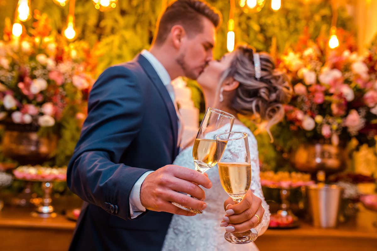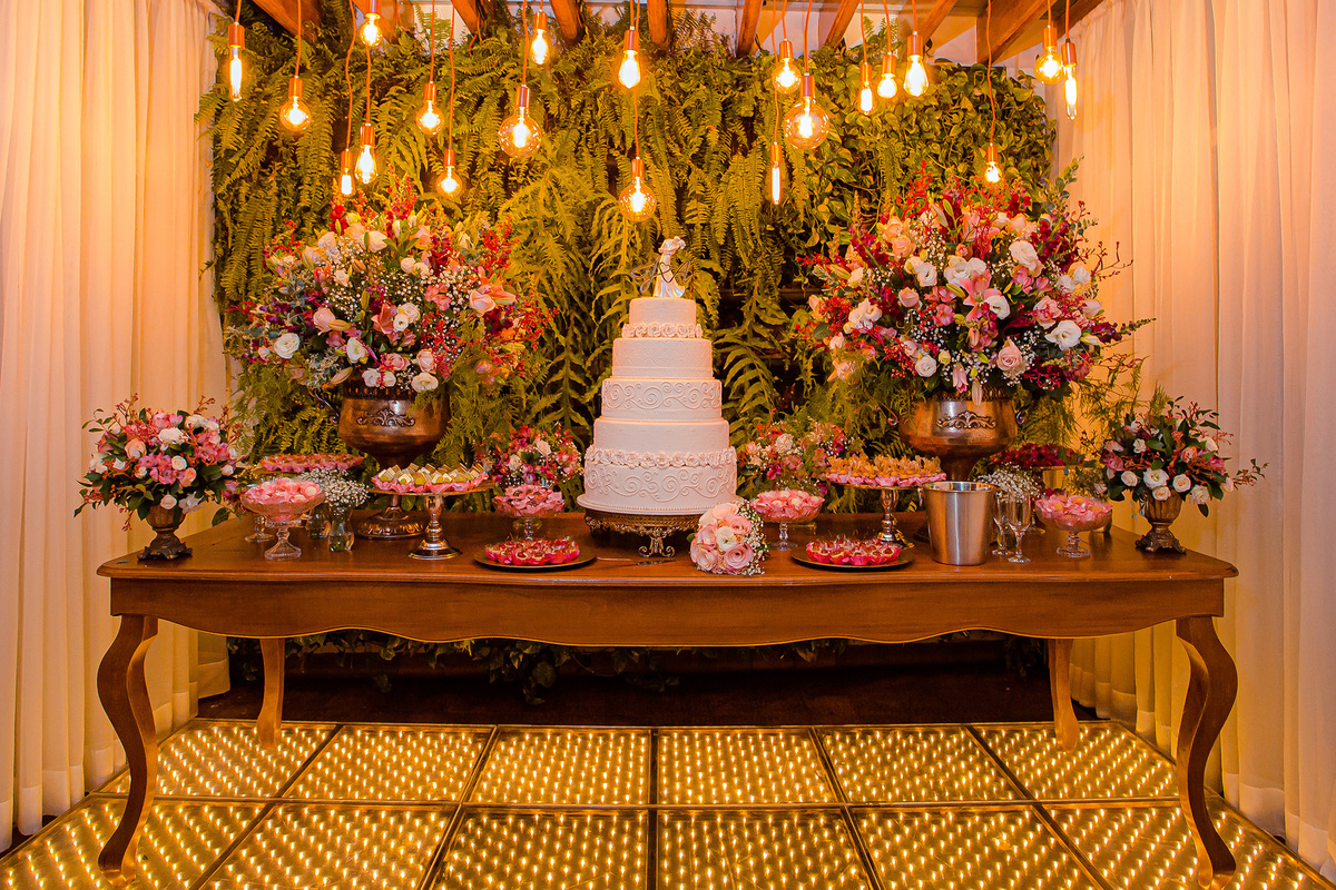 Foram recepcionados por familiares e amigos onde presenciaram um casamento sofisticado e com uma decoração maravilhosa.