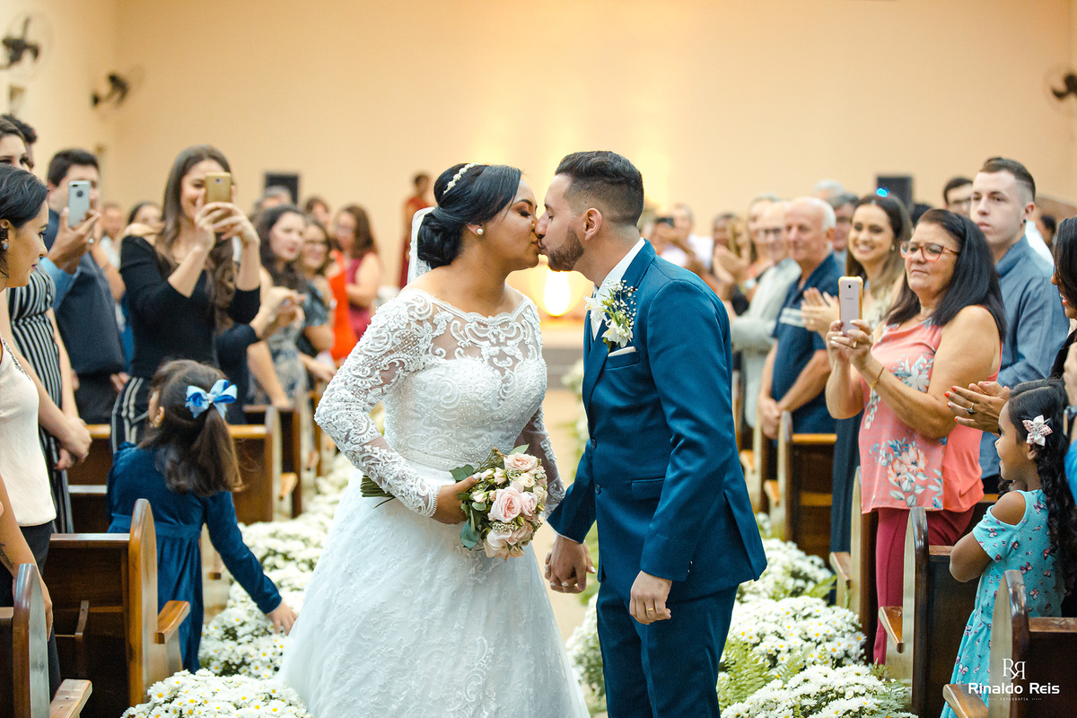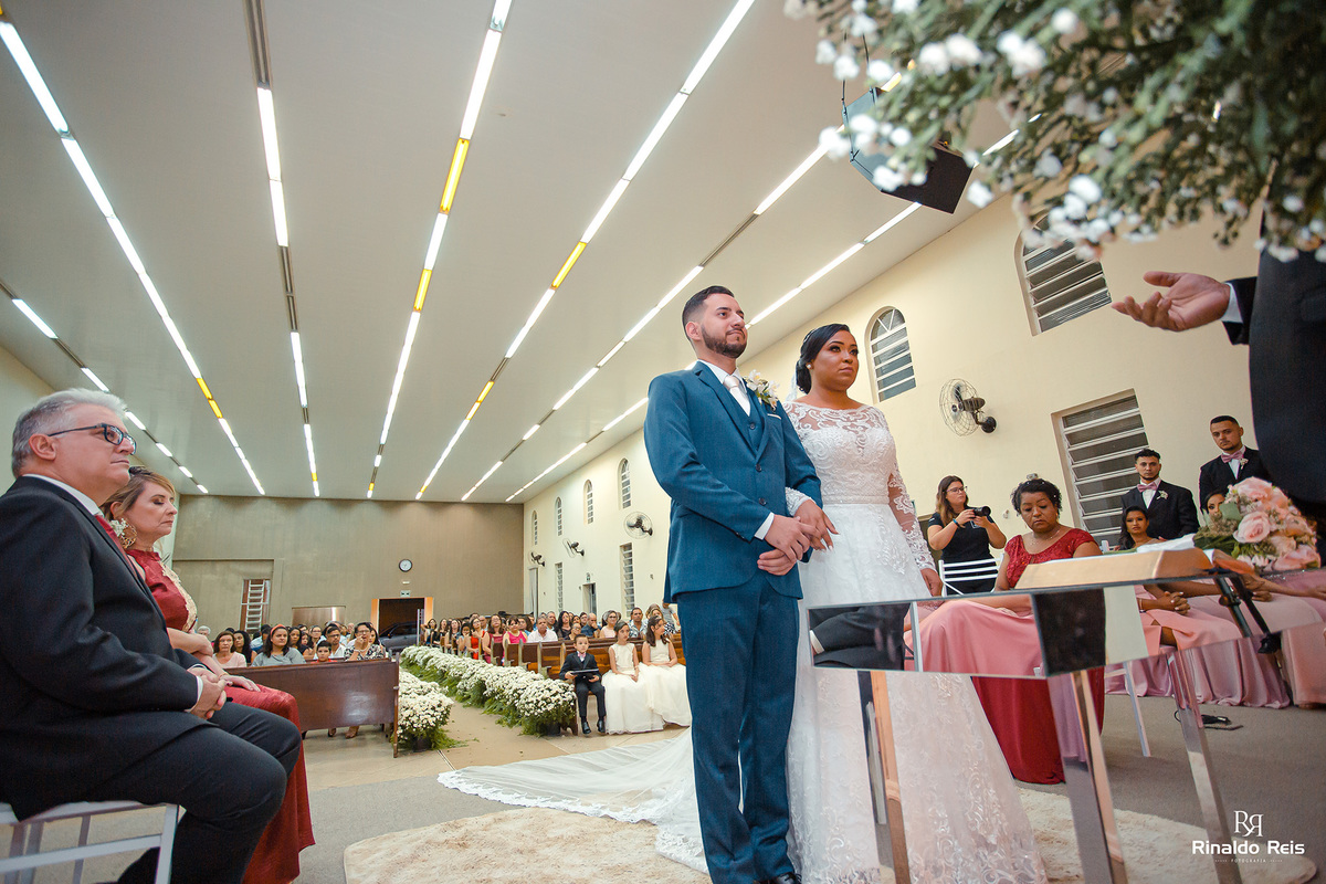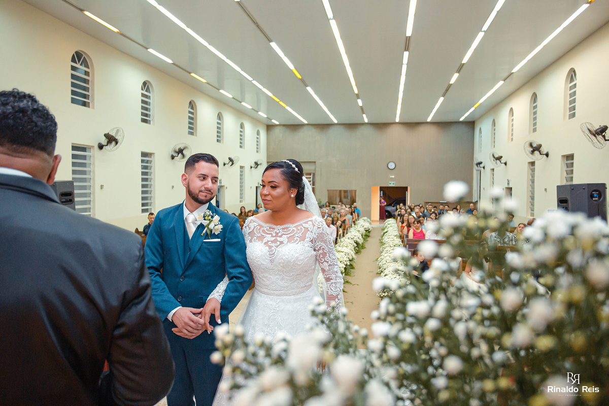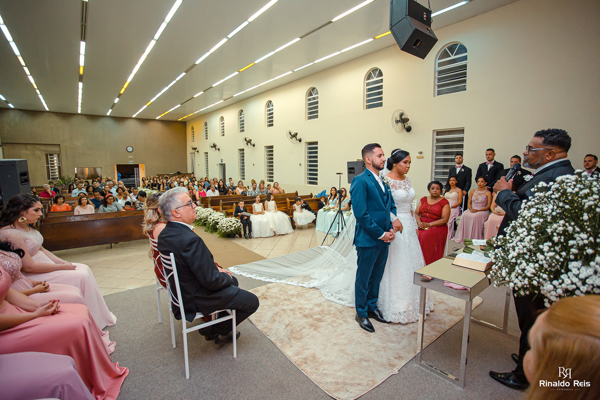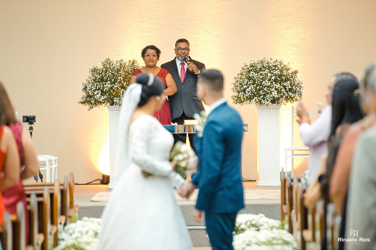 Fernanda e Caio se casaram em Mogi Guaçu sob as bençãos de Deus e com seu pai celebrando o casamento.