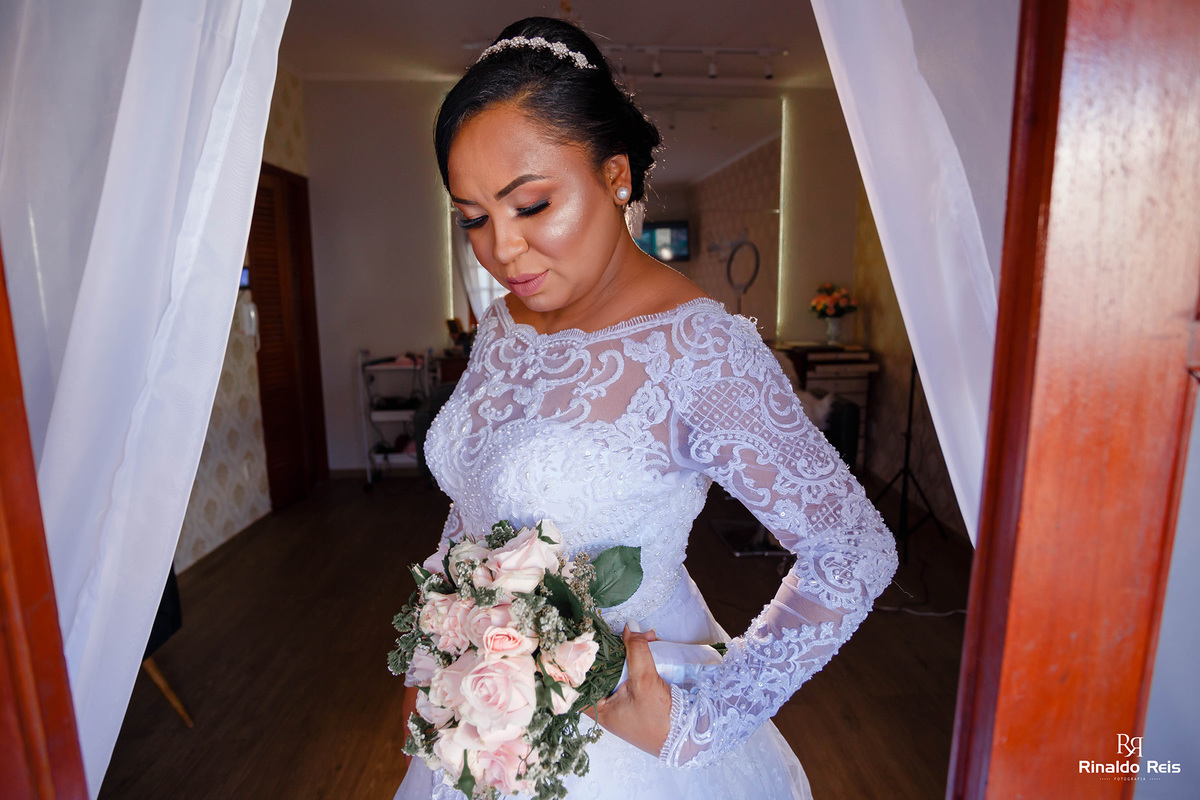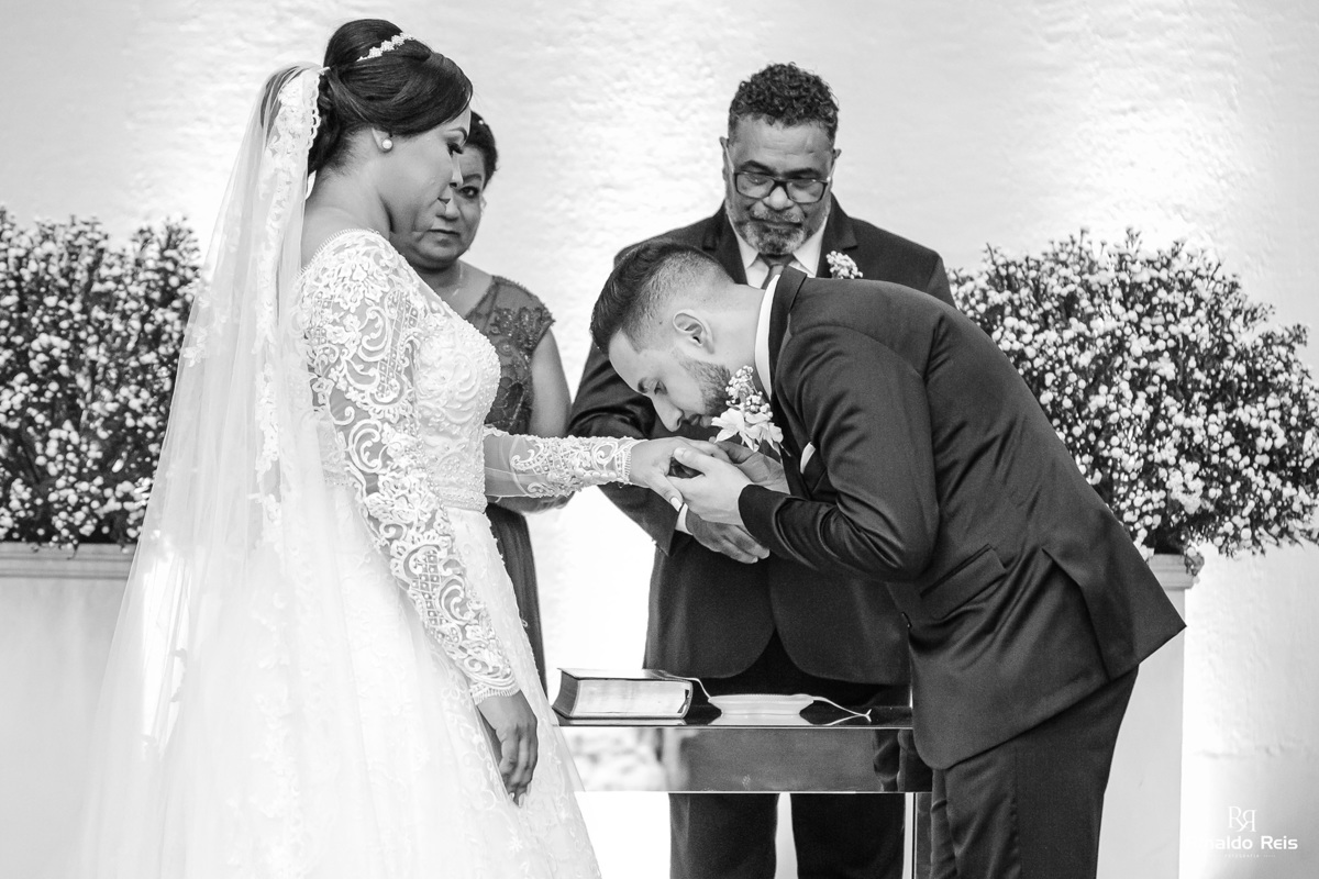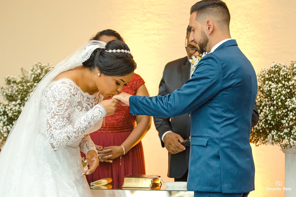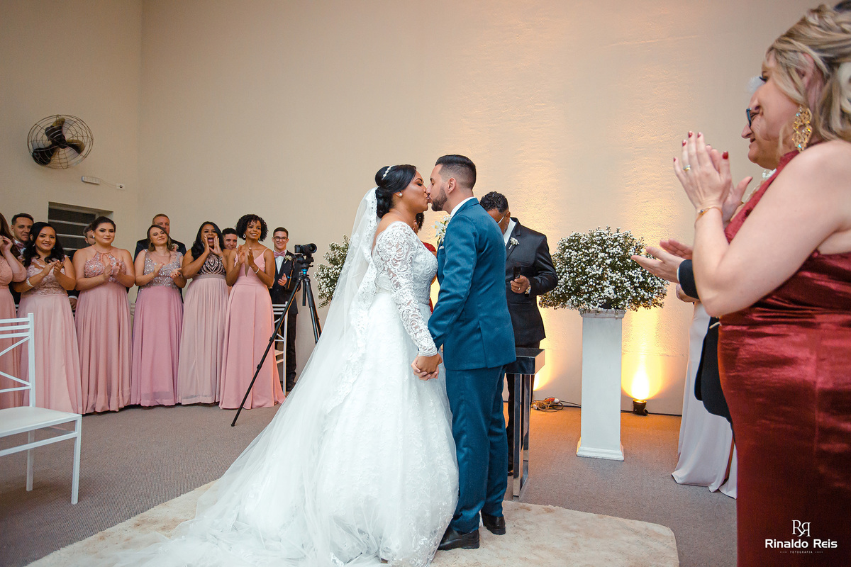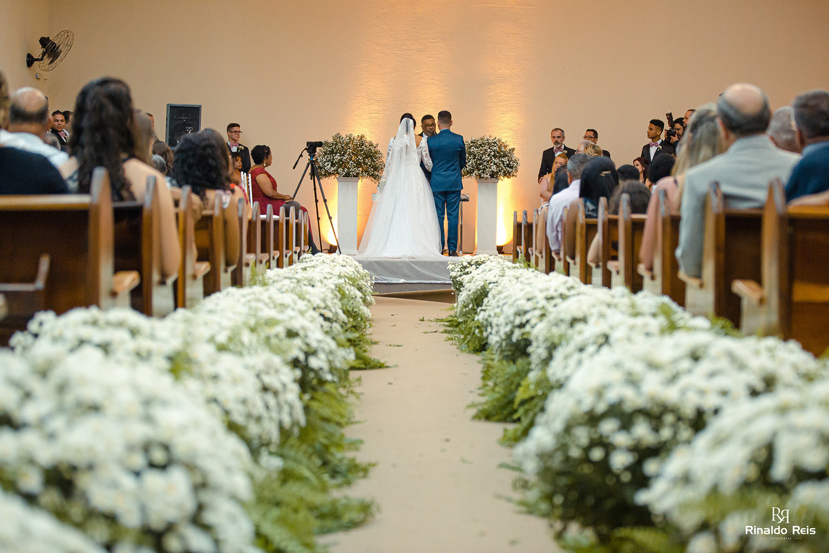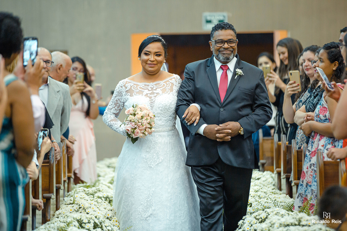 Fernanda e Caio se casaram em Mogi Guaçu sob as bençãos de Deus e com seu pai celebrando o casamento.